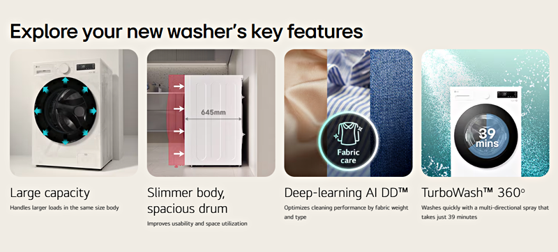 2025 Model – LG Washing Machine 15kg Slim Front Load F2515SNEG