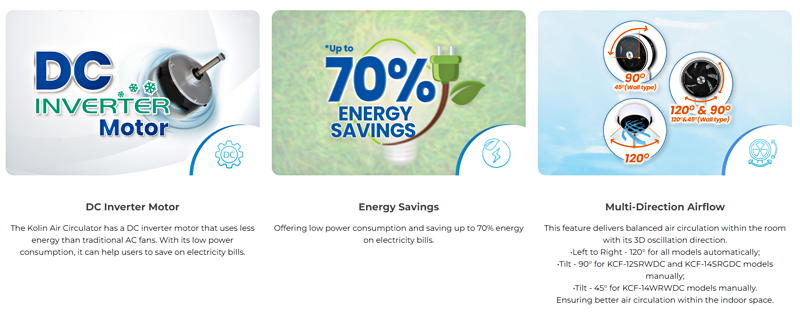 Kolin KCF-12SRWDC DC Inverter Motor Standing Air Circulator – 2025
