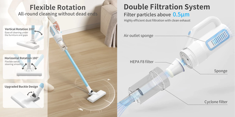 | Low noise design, enjoy quiet cleaning |