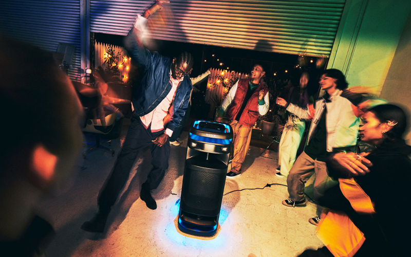 360º Party Sound carries powerful sound to every corner of the room. Four tweeters deliver clear sound to both the front and rear of the speaker, with two mid-range speakers for vocal clarity. Feel the bass sound, thanks to the large X-Balanced Speaker Unit. Together, they let everyone in the room feel the power of the music, wherever they are.